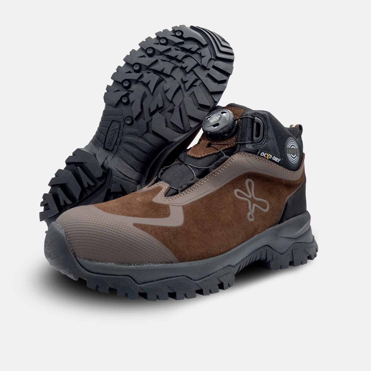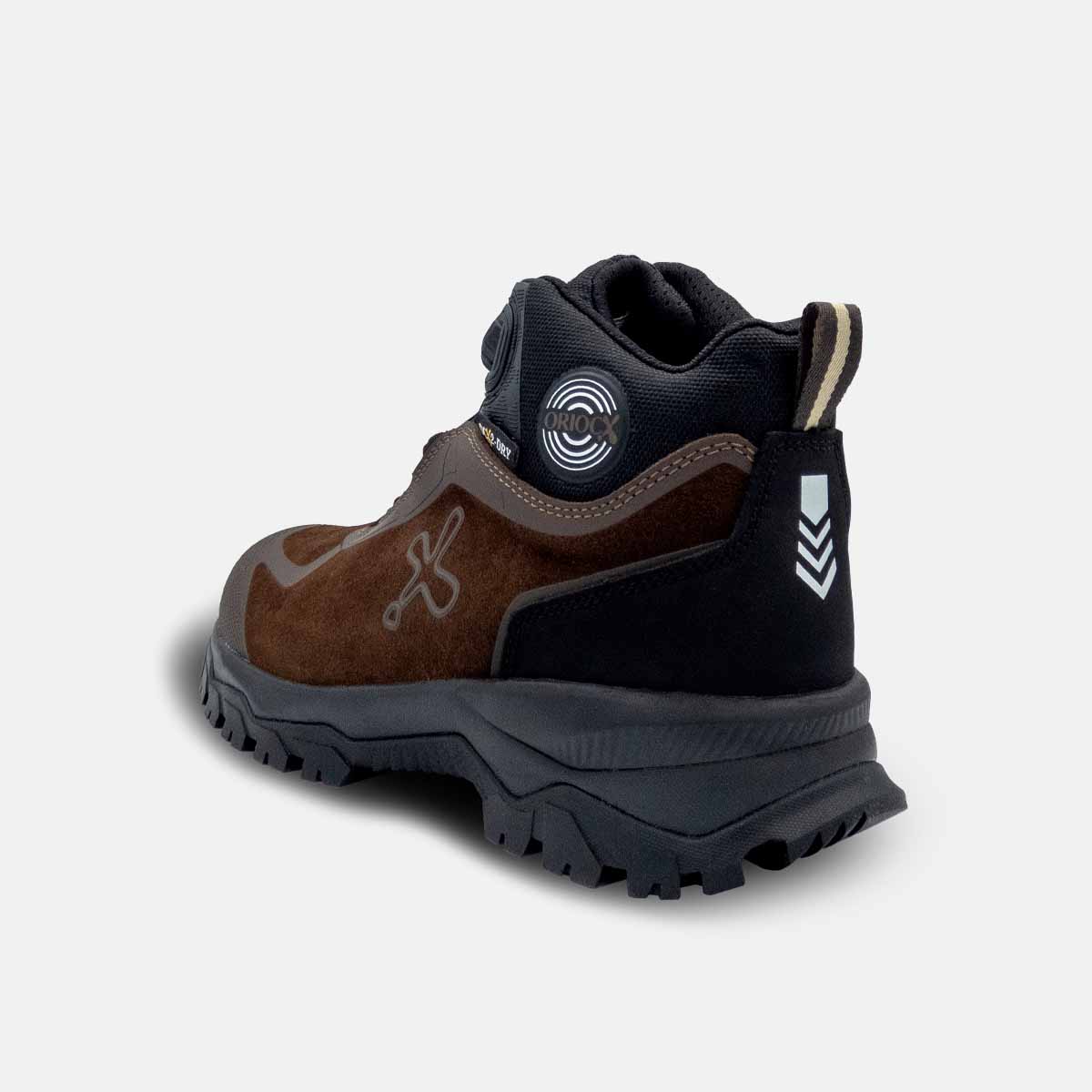 Bota de montaña diseñada para actividades al aire libre. Incorpora membrana OCX2-DRY, impermeable y transpirable, que mantiene el pie seco incluso en condiciones húmedas. Fabricada en piel serraje hidrofugada, repele eficazmente el agua y resulta ideal para su uso en ambientes húmedos. Cuenta con suela Oriocx de caucho y phylon, que ofrece gran resistencia, amortiguación y excelente agarre. Incorpora sistema de cierre FITGO para un atado y desatado rápido y cómodo.